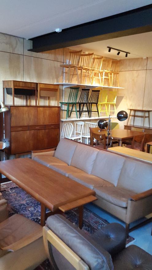 Restaurasjon og gjenbruk av moderne møbler og brukskunst. Retro design, teak, palisander, brukskunst, fajanse, glass, vinylplater og stereoutstyr